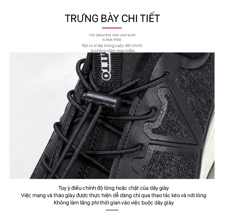Tùy ý điều chỉnh độ lỏng hoặc chặt của dây giày Việc mang và tháo giày được thực hiện dễ dàng chỉ qua thao tác kéo và nới lỏng Không làm lãng phí thời gian vào việc buộc dây giày.