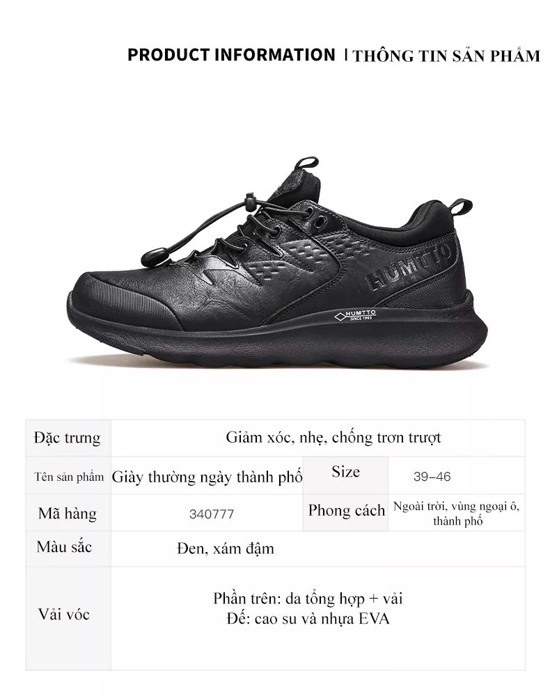 Với chế độ bảo hành 1 năm, Giày da nam thể thao cổ thấp Humtto 340777A là lựa chọn đáng tin cậy cho những người đàn ông yêu thích sự năng động và phong cách. Đây là sản phẩm lý tưởng cho cả hoạt động hàng ngày lẫn những chuyến phiêu lưu đầy thách thức.