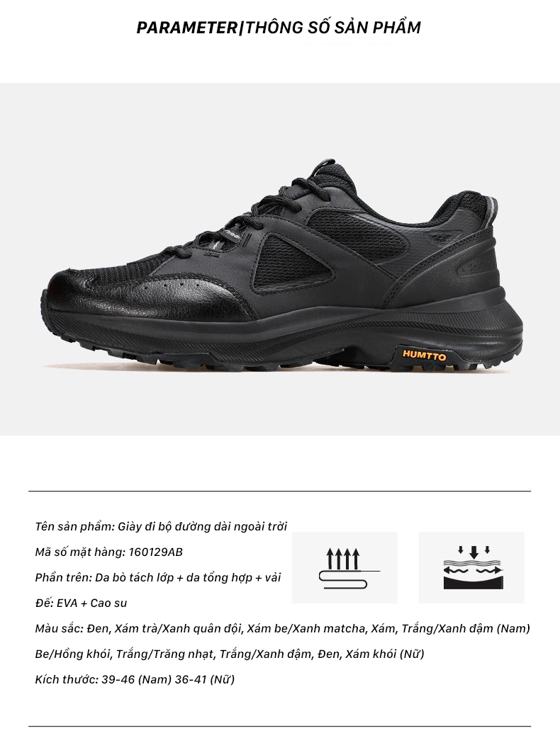 Giày hiking nam nữ Humtto 160129AB cổ thấp da bò lộn chống trơn là sản phẩm đột phá dành cho những tín đồ yêu thích khám phá thiên nhiên và hoạt động ngoài trời. Với chất liệu da bò tách lớp cao cấp kết hợp da tổng hợp và vải, đôi giày mang đến độ bền vượt trội cùng khả năng chống trơn trượt an toàn trên mọi địa hình. Thuộc thương hiệu Humtto Trung Quốc uy tín, sản phẩm được thiết kế chuyên biệt cho nhu cầu hiking, trekking và leo núi chuyên nghiệp. Ưu đãi giảm giá 30% còn 1.599.000₫ từ 2.300.000₫, đây là cơ hội vàng để sở hữu đôi giày chất lượng với mức giá cực kỳ hợp lý.