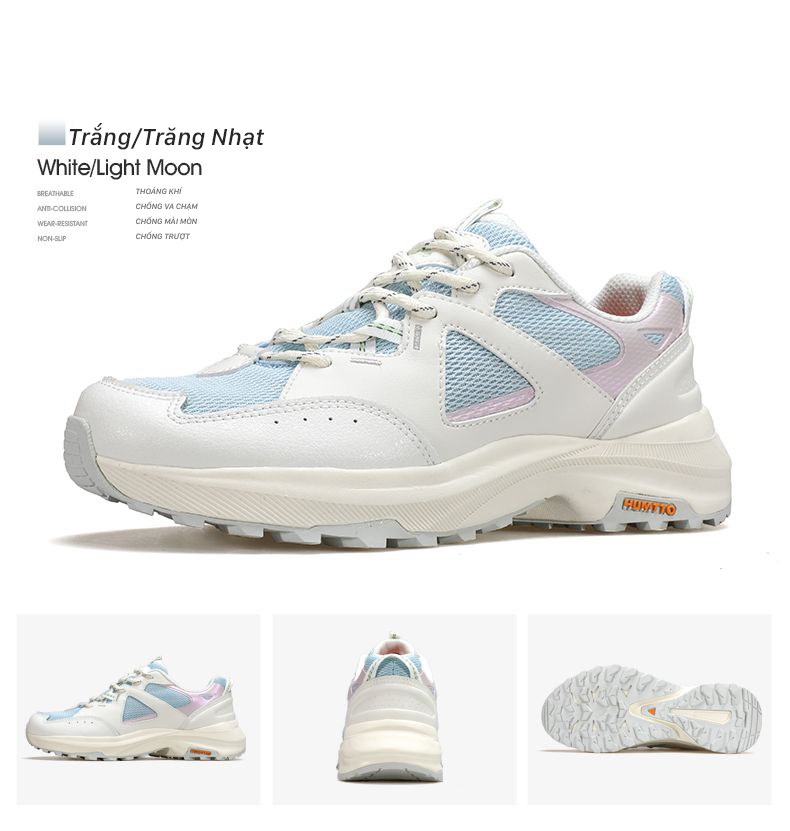 Sản phẩm có đa dạng màu sắc thời trang phù hợp với cả nam và nữ, từ các tông màu cơ bản như đen, xám đến những sự kết hợp độc đáo như xám trà/xanh quân đội, xám be/xanh matcha cho nam, và be/hồng khói, trắng/trăng nhạt cho nữ. Size từ 39-46 cho nam và 36-41 cho nữ đáp ứng đầy đủ nhu cầu của người Việt. Lớp lót polyester bên trong giúp hút ẩm tốt, giữ cho đôi chân luôn khô thoáng và dễ chịu ngay cả khi hoạt động cường độ cao.