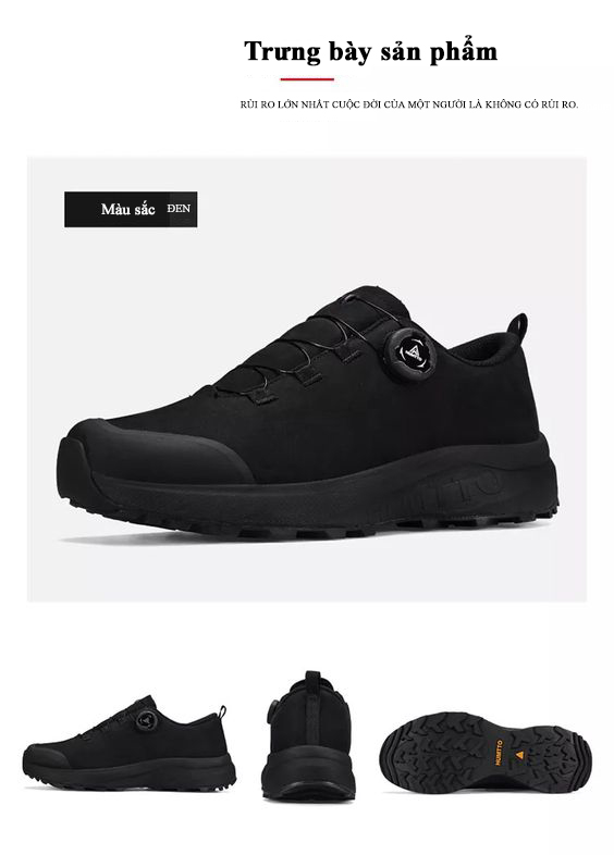 - Loại giày: Giày đi rừng cổ thấp núm vặn thắt dây vừa khít chân, chống trơn trượt, dễ đeo.