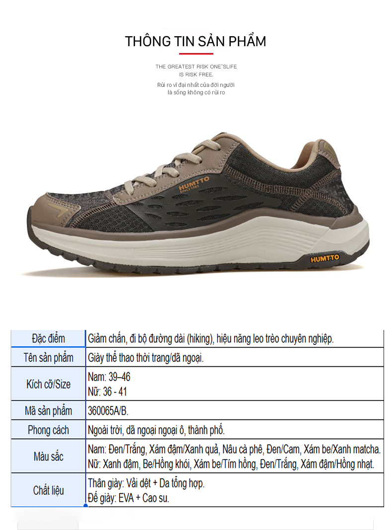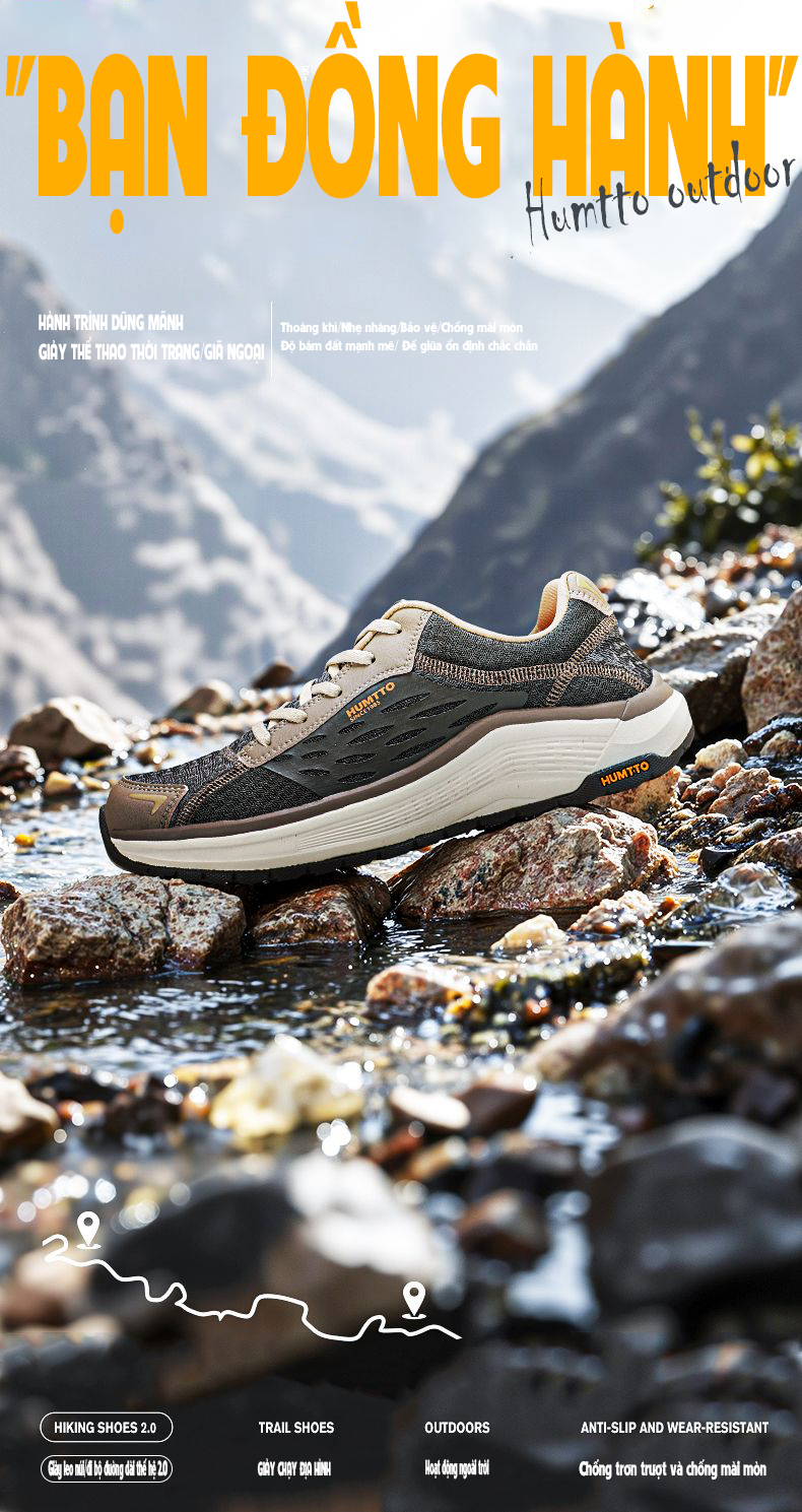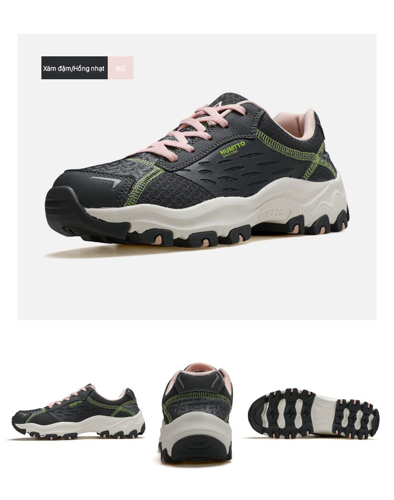 Tính năng sản phẩm: “Bạn đồng hành”. Thương hiệu đồ ngoài trời Humtto. “Hành trình dũng mãnh”. Giày thể thao thời trang/giã ngoại. Thoáng khí/Nhẹ nhàng/Bảo vệ (bảo vệ bàn chân/mũi chân)/Chống mài mòn/Độ bám đất mạnh mẽ/Đế giữa ổn định, chắc chắn.