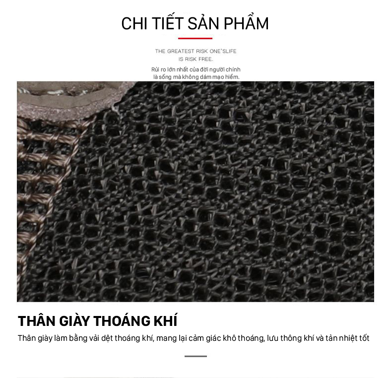 Thân giày thoáng khí. Thân giày làm bằng vải dệt thoáng khí, mang lại cảm giác khô thoáng, lưu thông khí và tản nhiệt tốt.