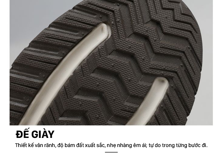 Đế giày. Thiết kế vân rãnh, độ bám đất xuất sắc, nhẹ nhàng êm ái; tự do trong từng bước đi.