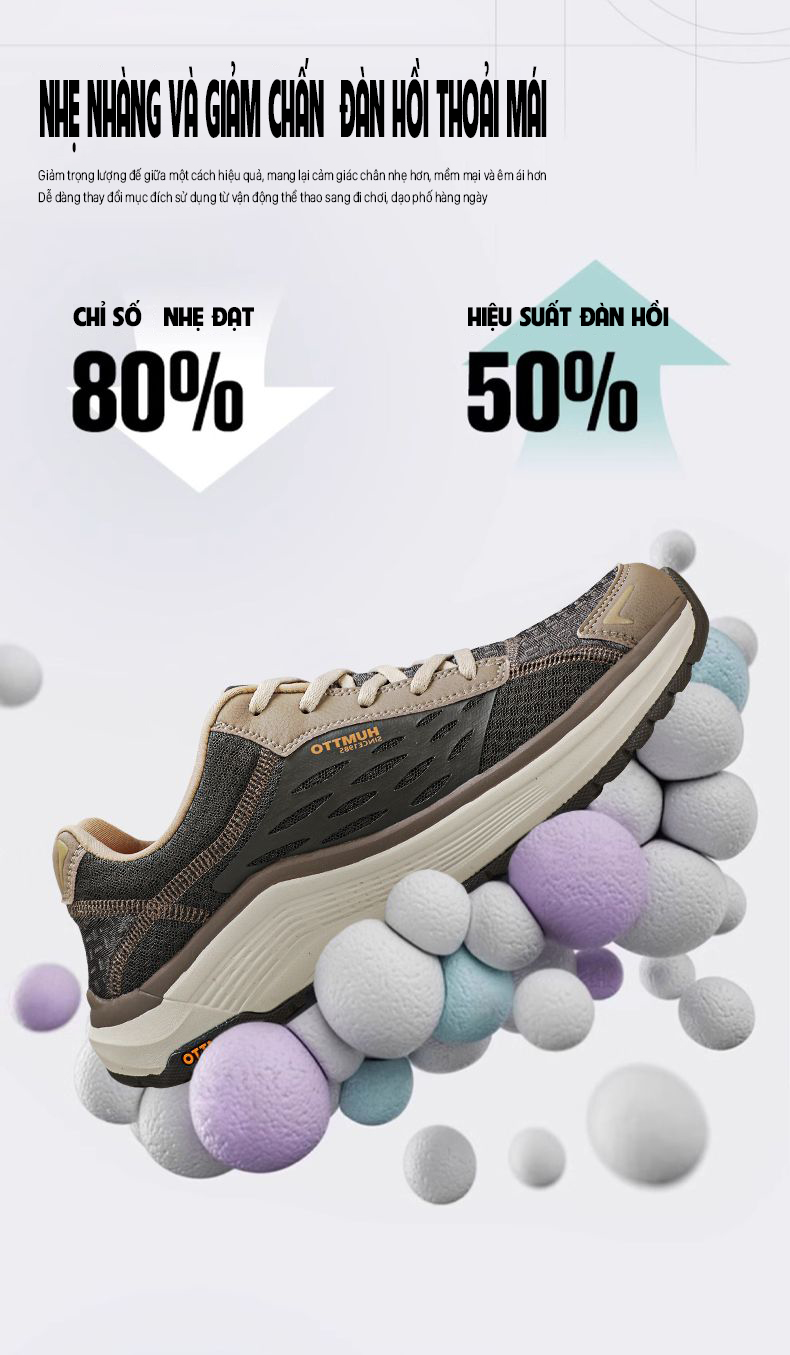 Nhẹ nhàng và giảm chấn (giảm xóc). Đàn hồi thoải mái. Giảm trọng lượng đế giữa một cách hiệu quả, mang lại cảm giác chân nhẹ hơn, mềm mại và êm ái hơn. Dễ dàng thay đổi mục đích sử dụng từ vận động thể thao sang đi chơi, dạo phố hàng ngày. Chỉ số nhẹ đạt 80%. Hiệu suất đàn hồi/nẩy tăng 50%.