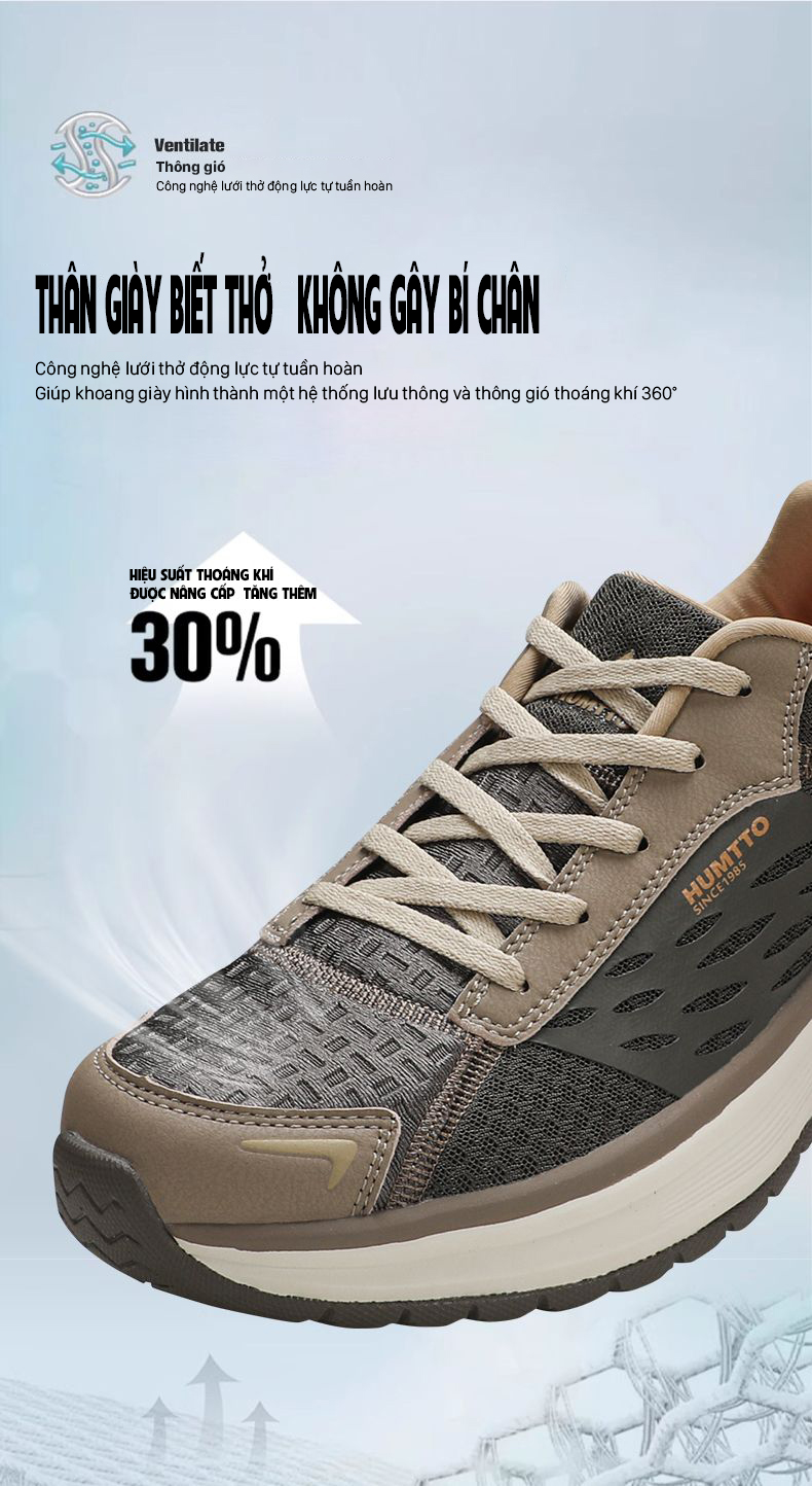 Ventilate thông gió. Thân giày “biết thở”, không gây bí chân. Công nghệ lưới thở động lực tự tuần hoàn giúp khoang giày hình thành một hệ thống lưu thông và thông gió thoáng khí 360°. Hiệu suất thoáng khí được nâng cấp, tăng thêm 30% so với các dòng cũ.