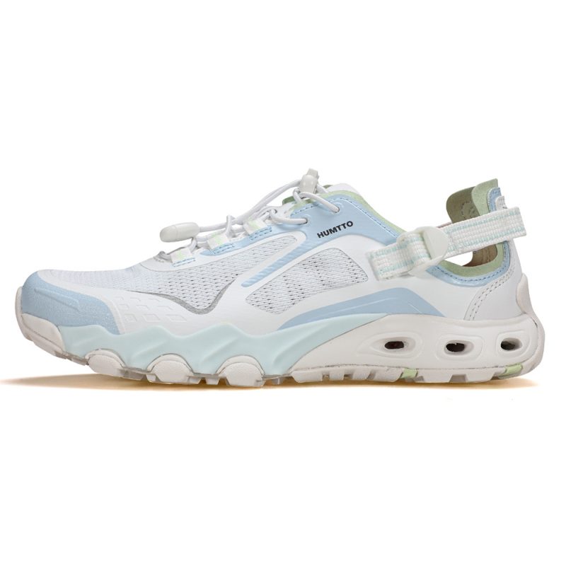 Giày sandals nữ đi suối Humtto 660893B mặt lưới mau khô dây rút là lựa chọn lý tưởng cho những cô nàng đam mê khám phá thiên nhiên và chinh phục suối nước. Sản phẩm được thiết kế đặc biệt với chất liệu vải cao cấp kết hợp TPU bền bỉ, tạo nên độ chắc chắn và khả năng chống nước tuyệt vời. Đế giày làm từ EVA êm ái phối hợp cùng cao su chống trượt, đảm bảo sự an toàn và thoải mái tối đa khi di chuyển trên địa hình suối đá trơn trượt.